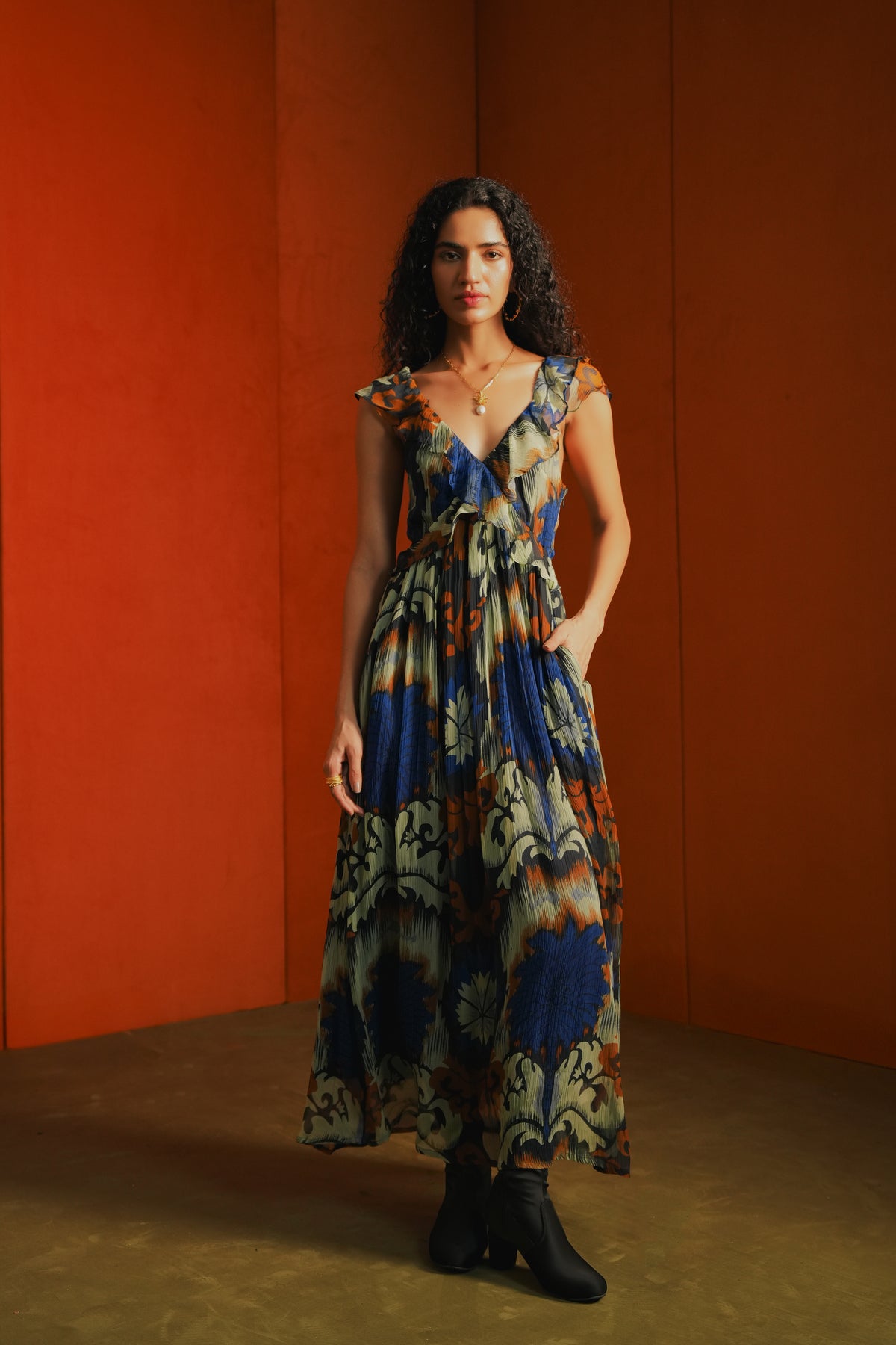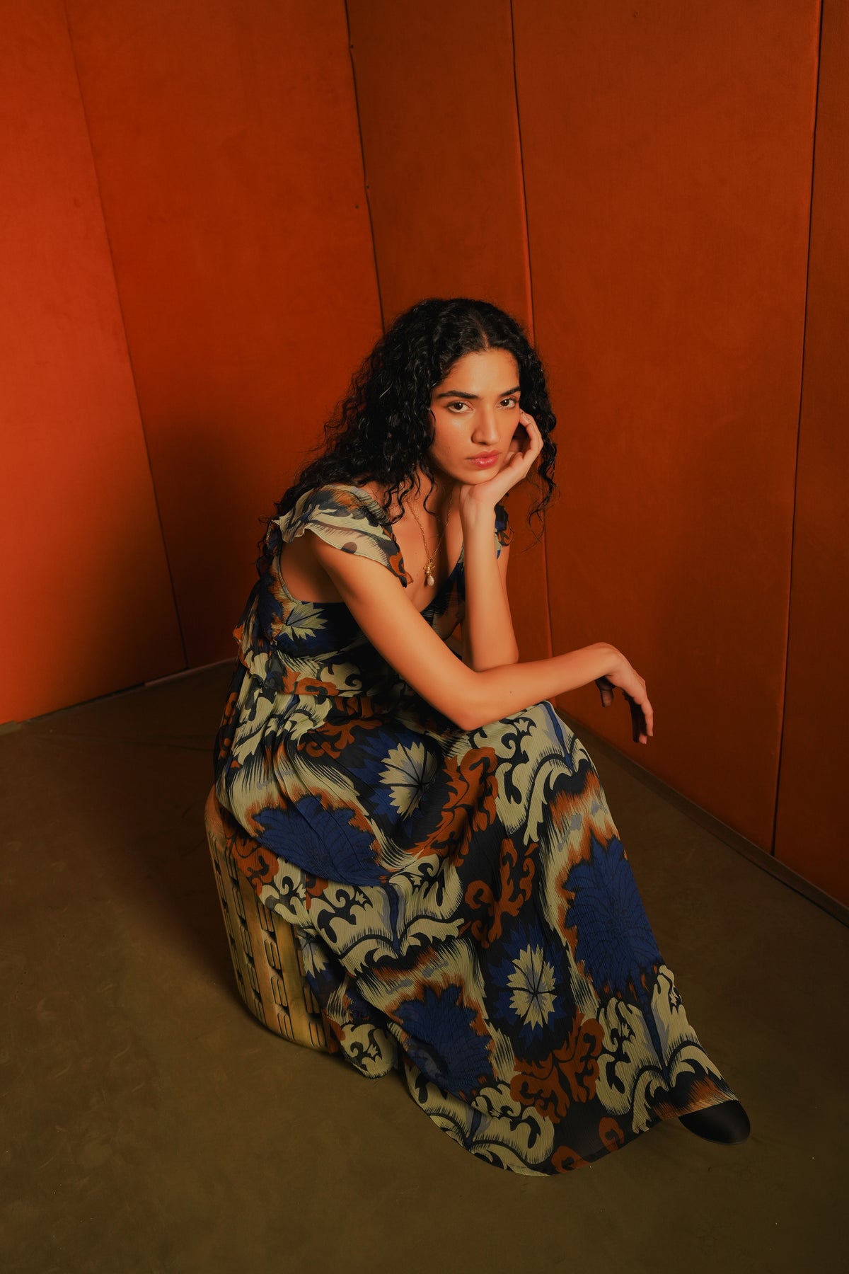 A timeless silhouette that moves with effortless grace — the Tashi Frill Dress captures the romance of rich autumnal hues and delicate frills, all crafted in luscious chiffon. Perfect for a dinner under the stars, it transitions seamlessly into cooler days when paired with boots and a bomber.