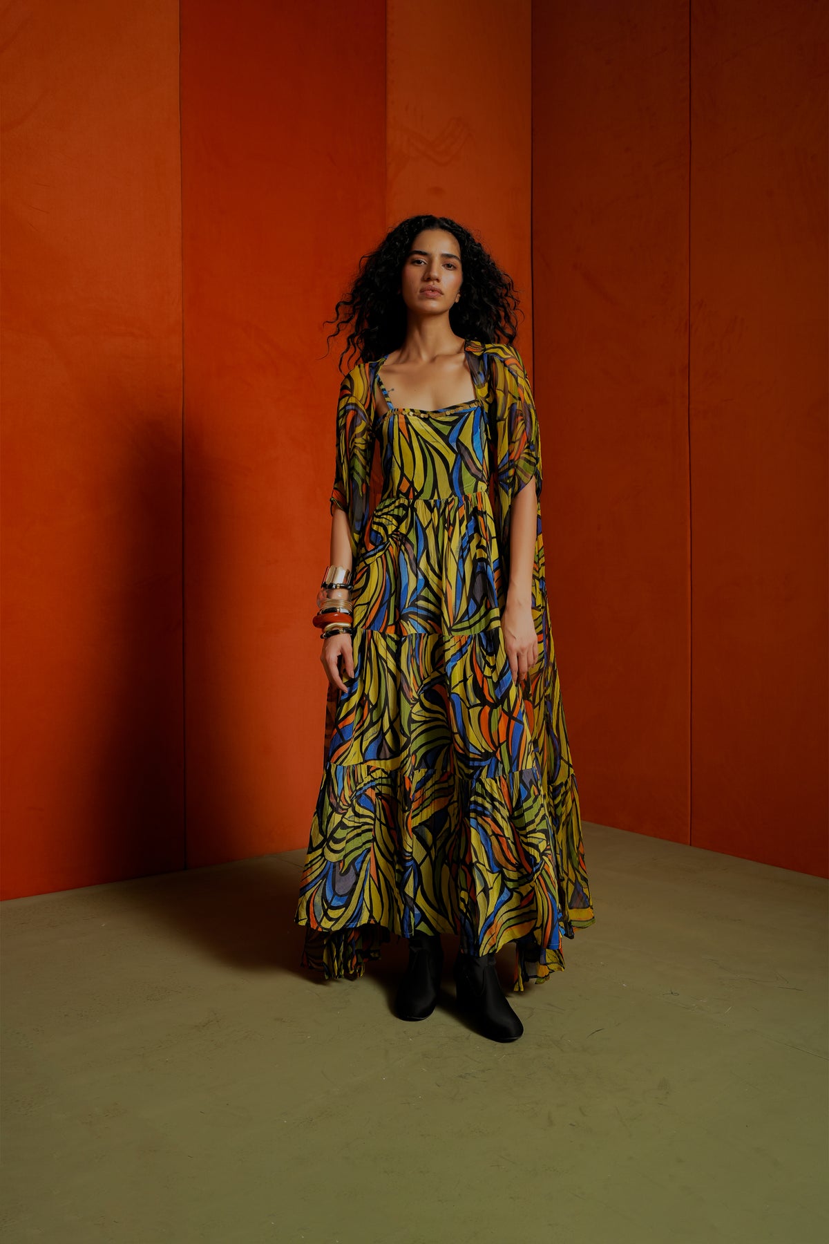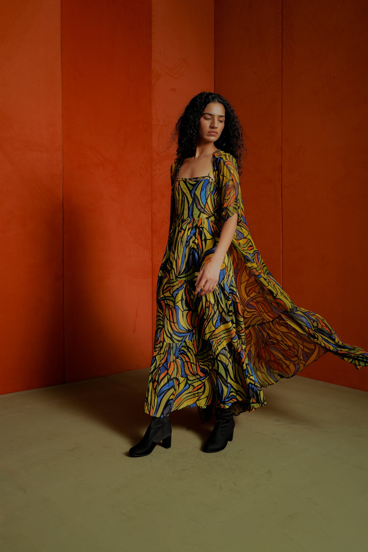 The Indus Kimono is your ultimate throw-on-and-wow piece—effortless, breezy, and endlessly chic. Crafted in soft chiffon, it drapes like a dream and instantly elevates your style game. Pair it with the Indus Maxi for a head-turning festive ensemble that feels as fabulous as it looks.
