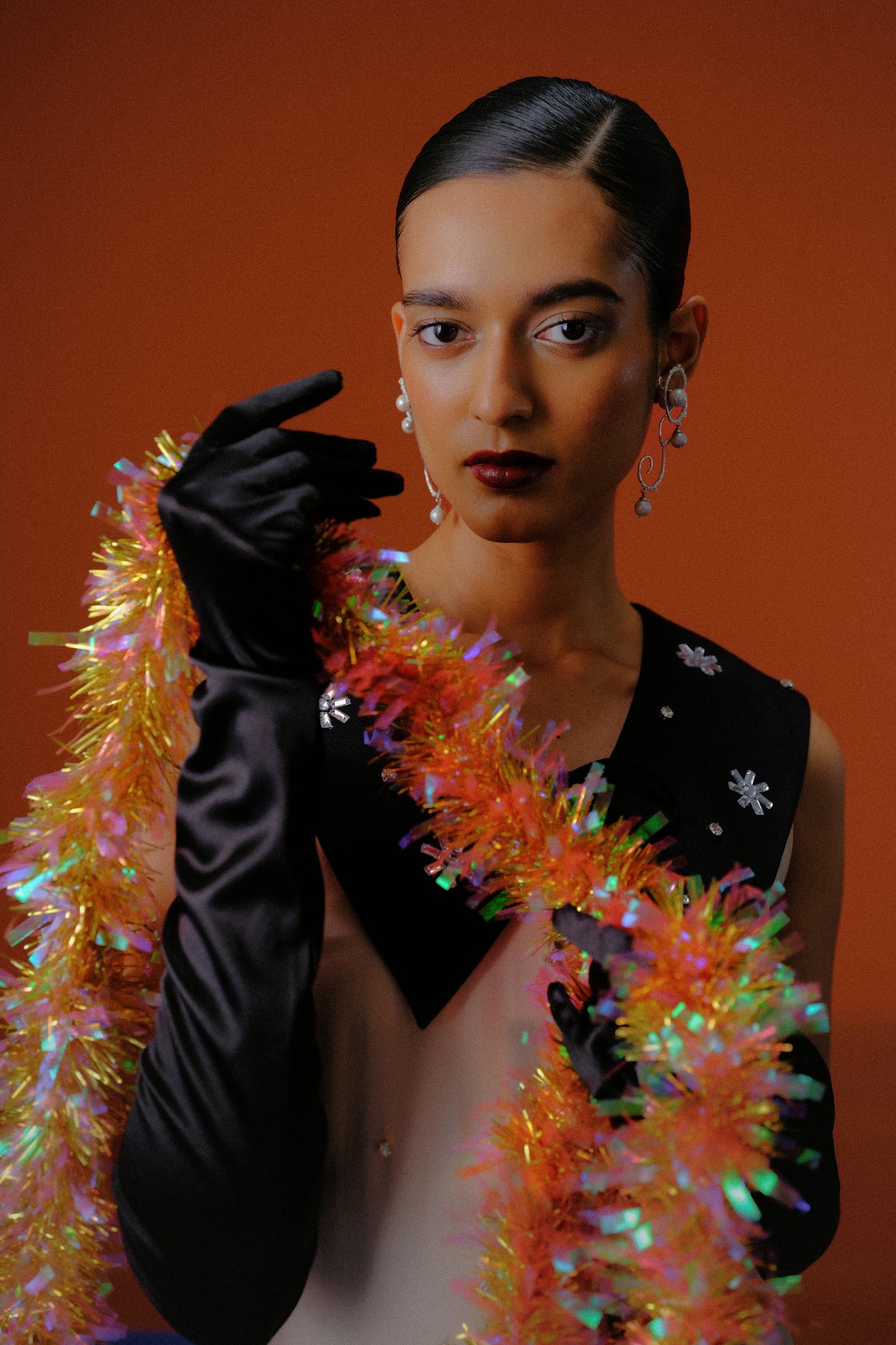 Let the whimsy adore you. The Crystal Dress channels old-world glamour with its glimmering jeweled details and ethereal charm. Feminine, flirtatious, and full of sparkle, it’s a luminous statement piece crafted for moments when you’re meant to shine.
