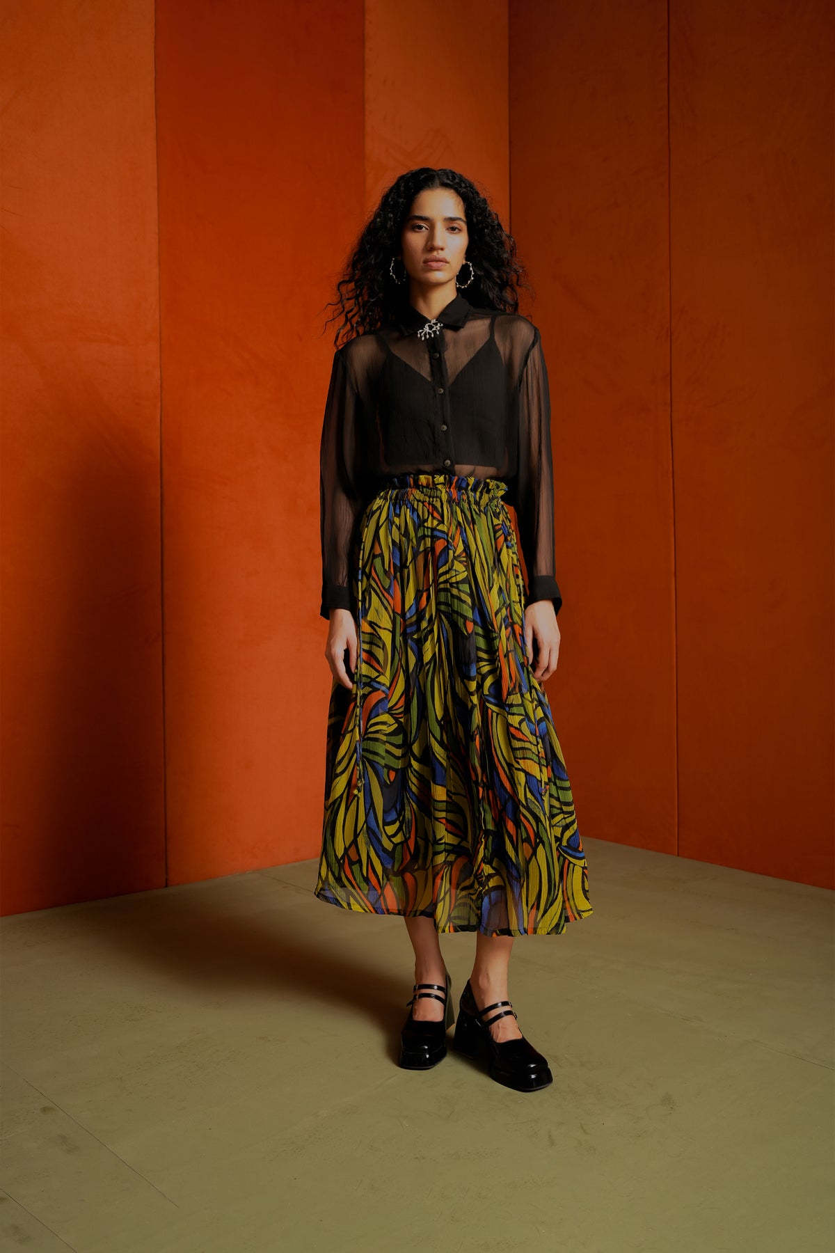 The sheer Indus black shirt is an effortless wardrobe gem—versatile, sultry, and endlessly chic. Crafted to layer or style solo, it’s the piece that takes you from understated elegance to bold statement in a heartbeat. Pair it with the Indus Skirt for a head-turning ensemble that’s equal parts effortless and unforgettable.