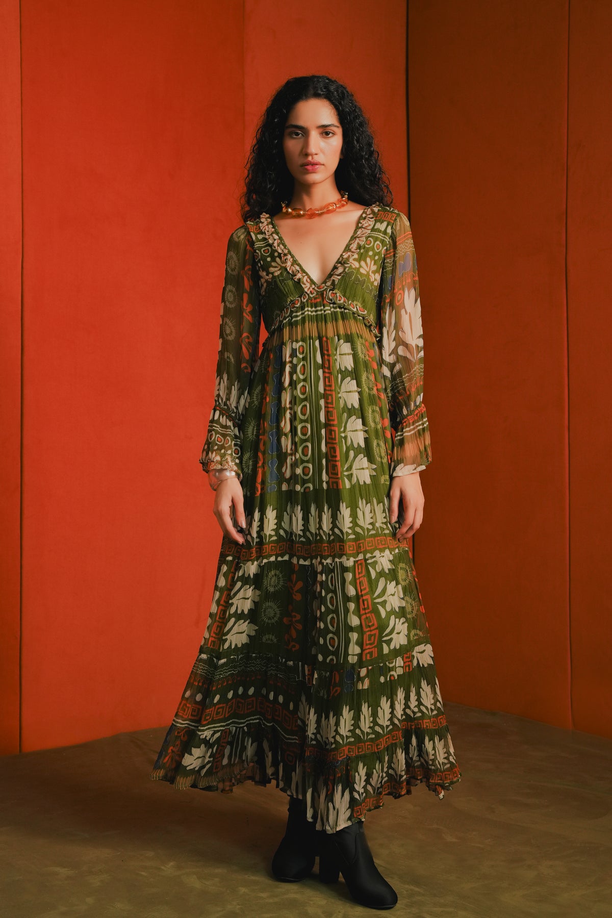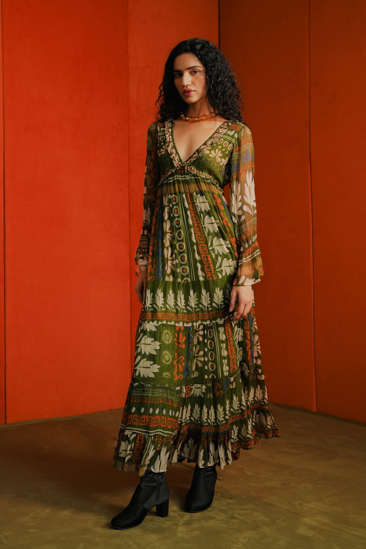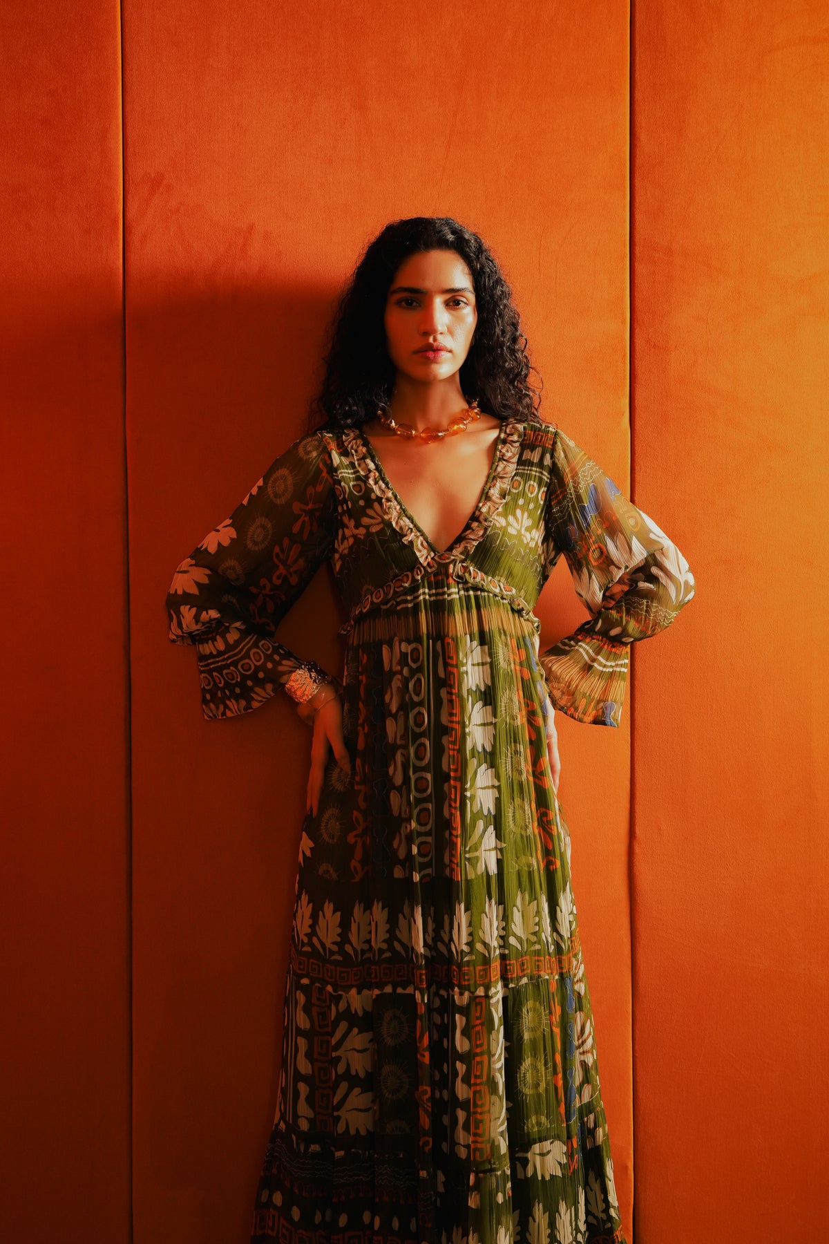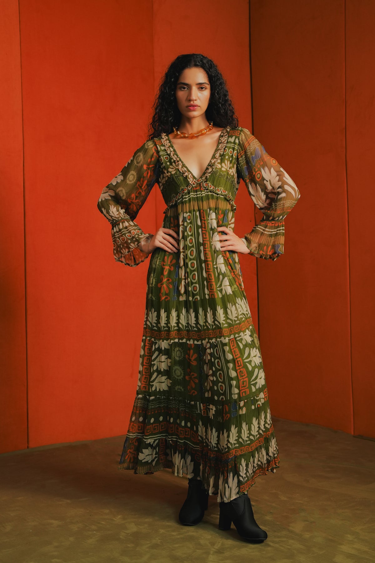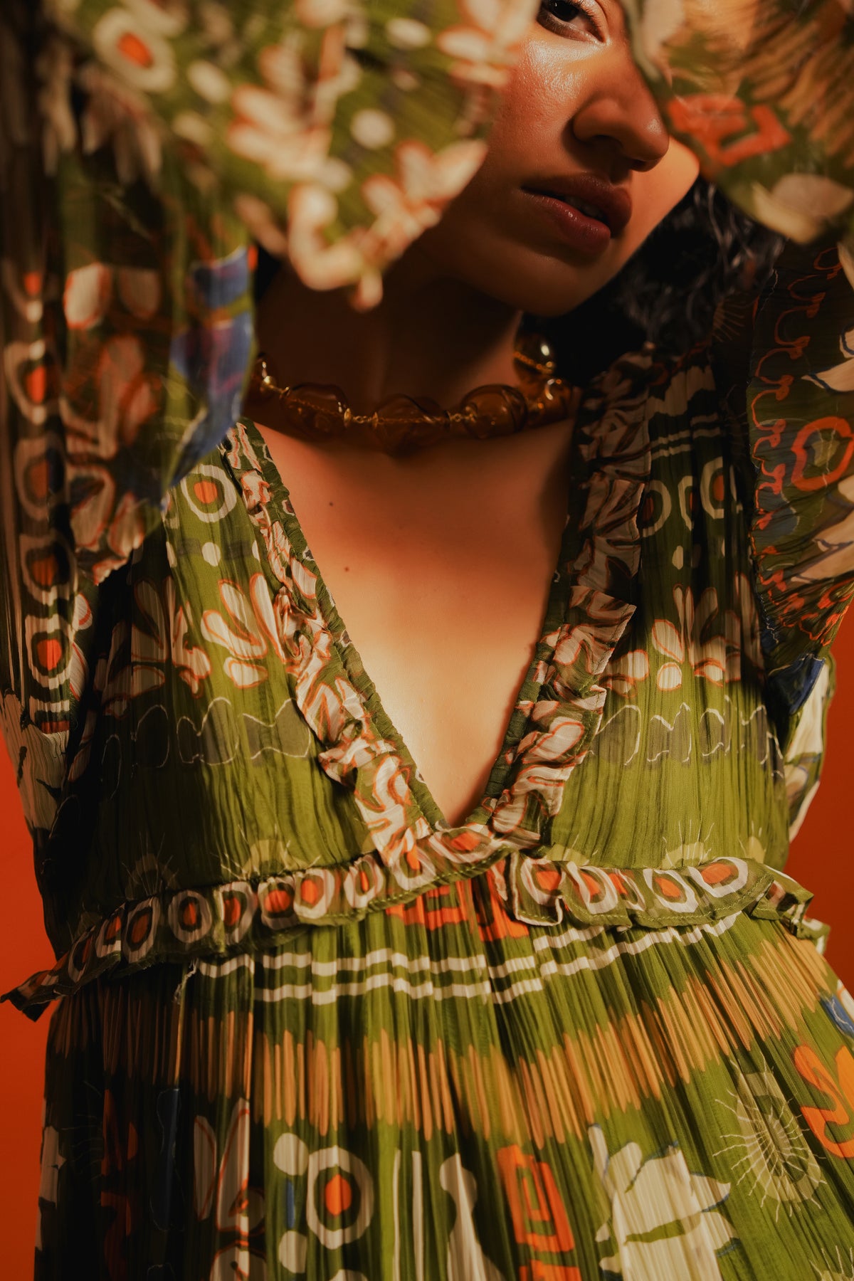 Autumnal hues meet bold patterns and a whole lot of feminine flair — that’s the Tamarin Maxi for you. Cut from airy chiffon, it moves with you effortlessly — elegant on its own, or styled with winter layers and boots for that cool-girl edge. A silhouette made for every mood, every moment.