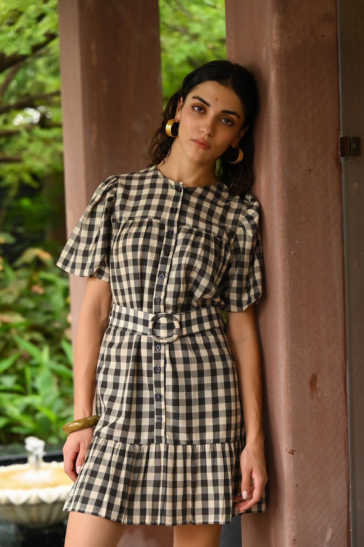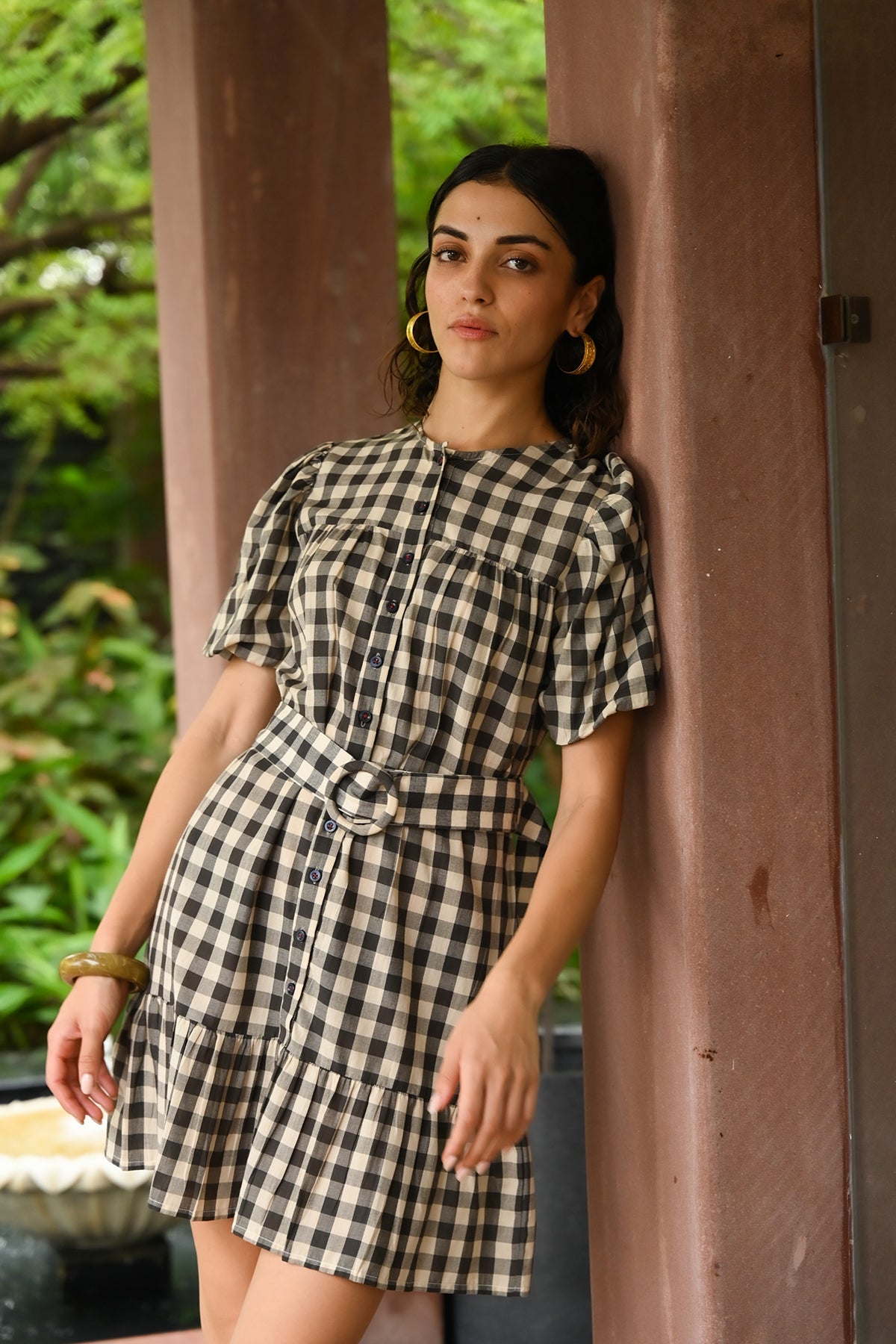 Polished yet playfully chic, this charcoal gingham short dress is designed for days when you want to look effortlessly put together. Whether it’s spontaneous coffee catch-ups or a day spent exploring the city, this easygoing piece has you covered.