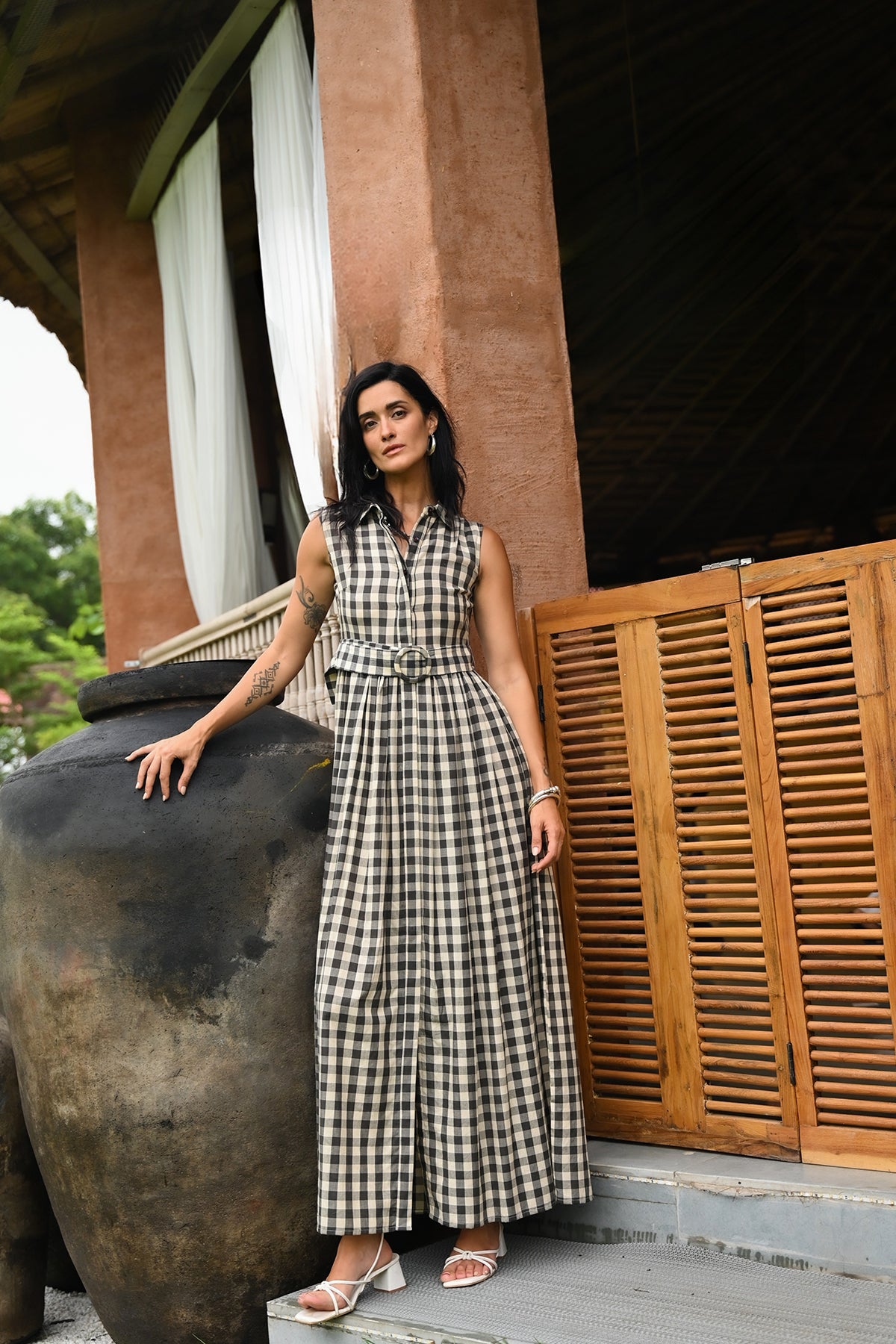 The Charcoal gingham button-down dress strikes the perfect balance between polished and effortless. Designed for days when you want to look put-together without compromising on comfort, it’s your ideal companion for everything from professional lunches to last-minute catch-ups. Easy to wear, easier to love!