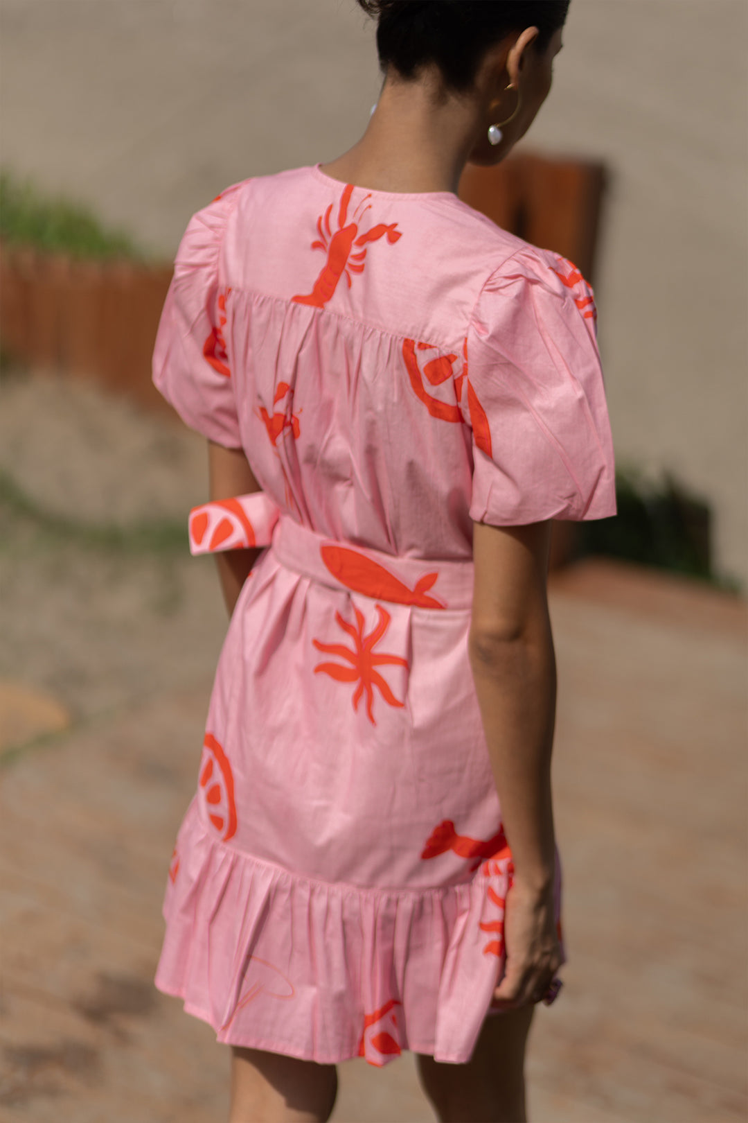Slip on the Matilda Short Dress and dive into everyday adventure! With whimsical pink prints of lobsters, fish, and all things aquatic, plus a functional belt for a perfect fit, this breezy dress is your go-to for effortless style. Pair with slides for daytime fun or dress it up for warm evening vibes!