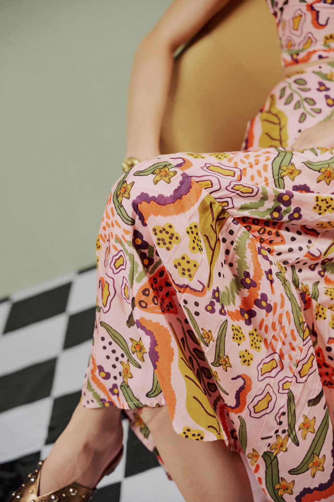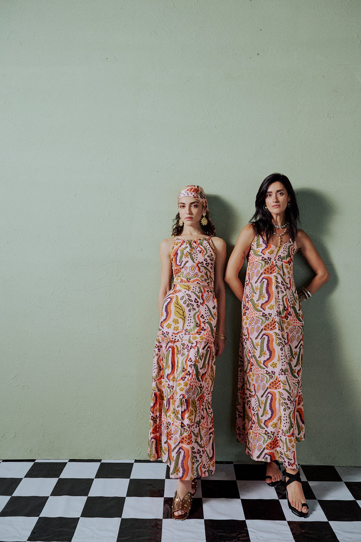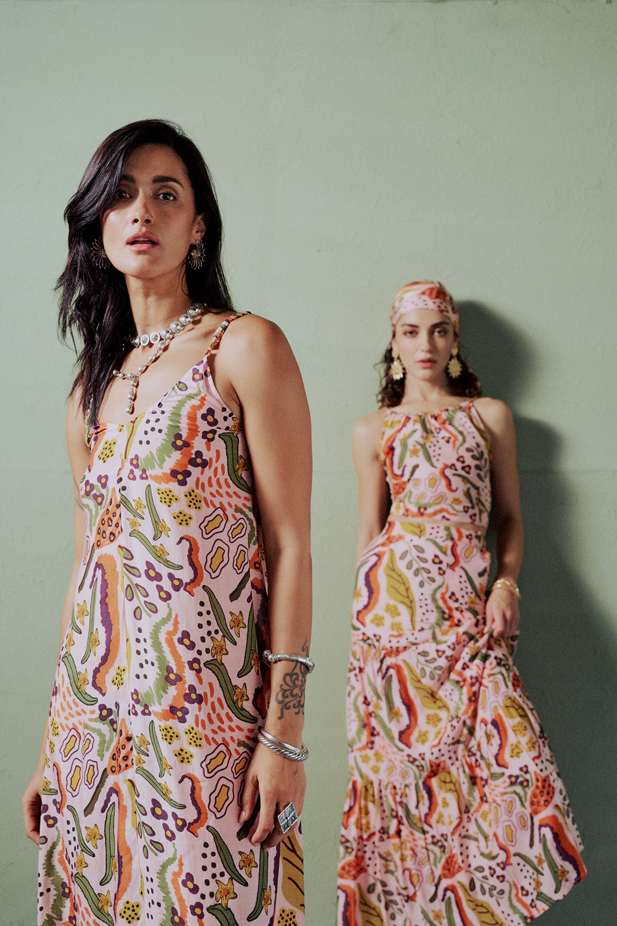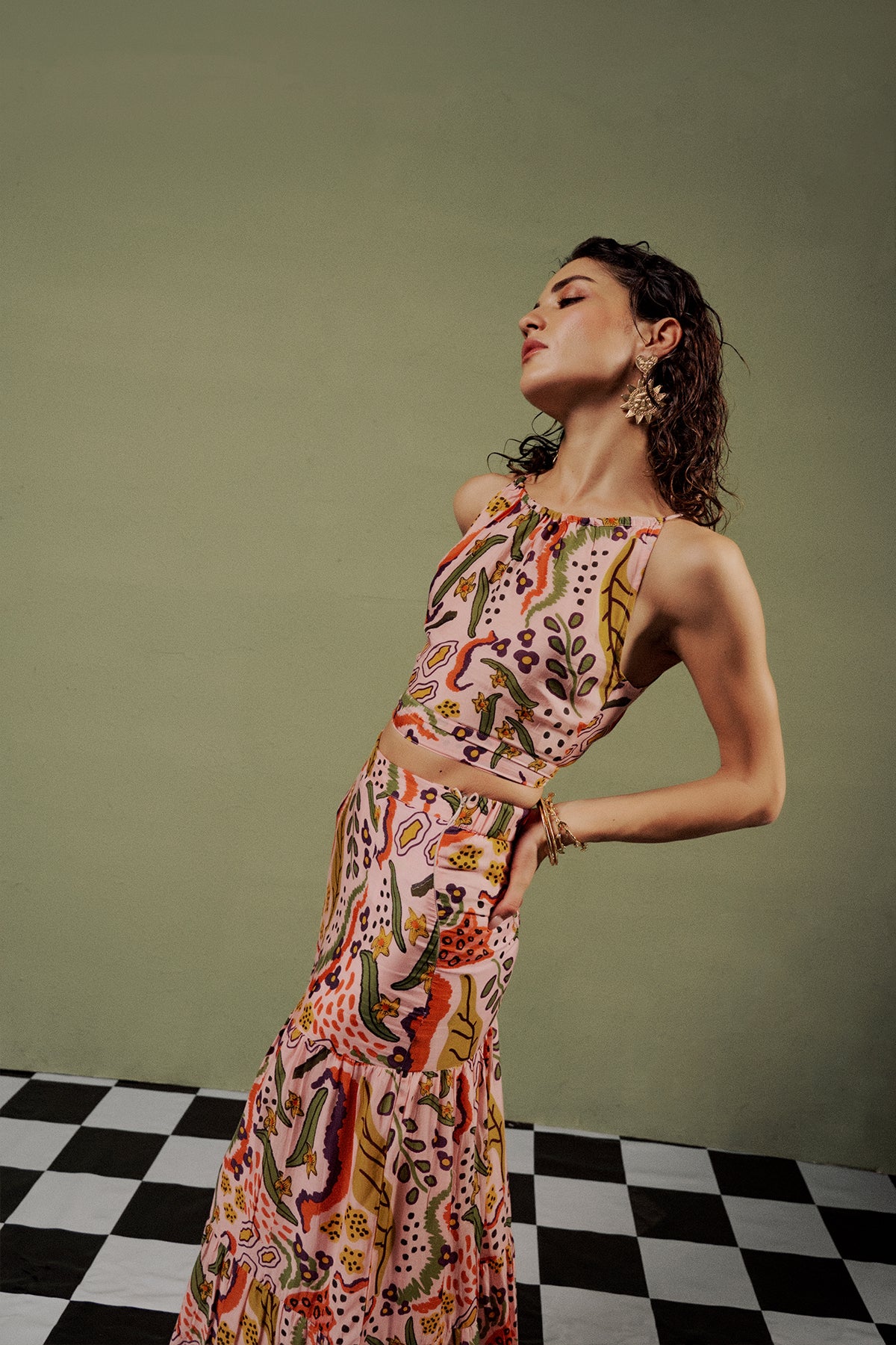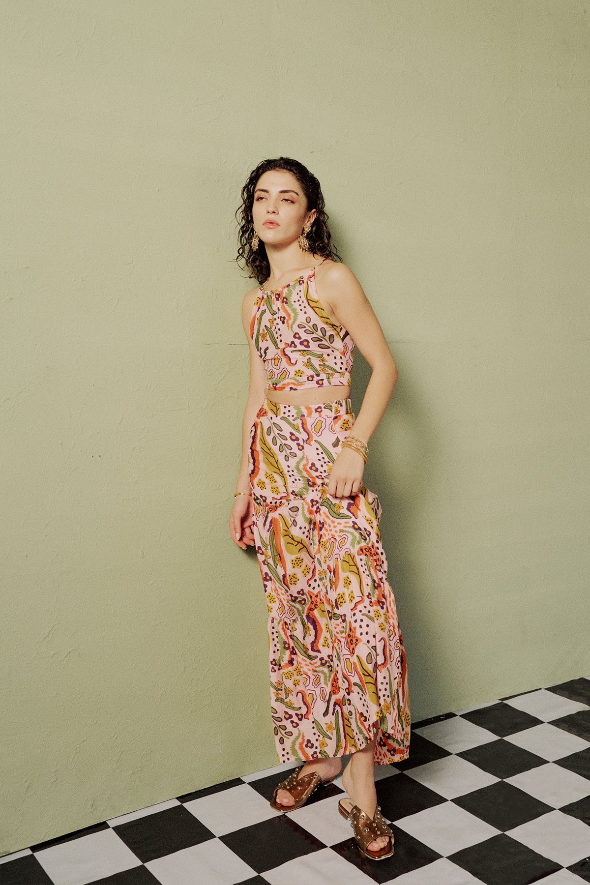 Occasion dressing gets a playful upgrade with the Tanzia Skirt, crafted in vibrant, mood-lifting hues for an effortlessly standout look. Its flowing silhouette adds elegance with ease, making it perfect for any elevated setting. Pair it with the matching Tanzia Blouse and gold accessories for a chic, statement-making ensemble.