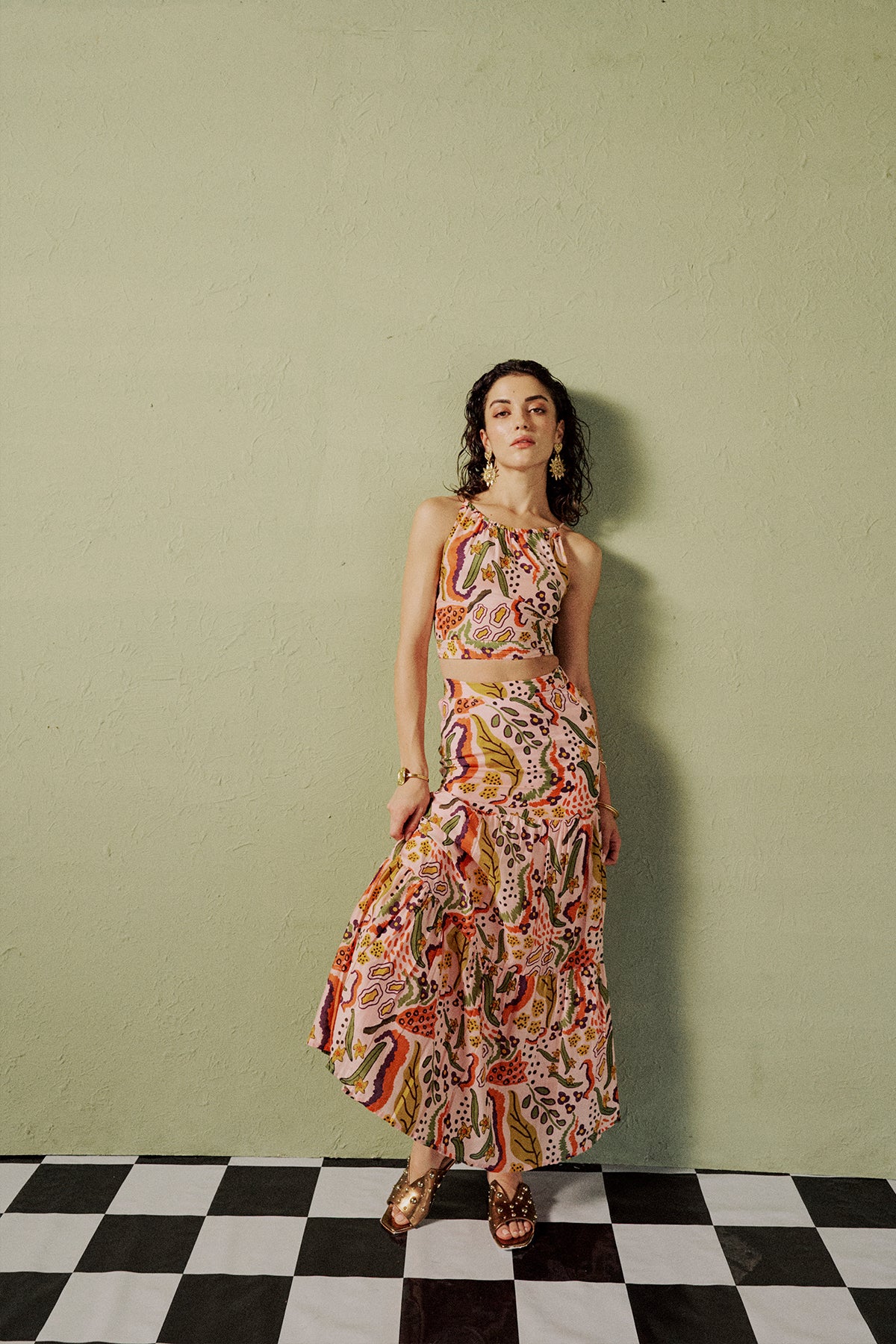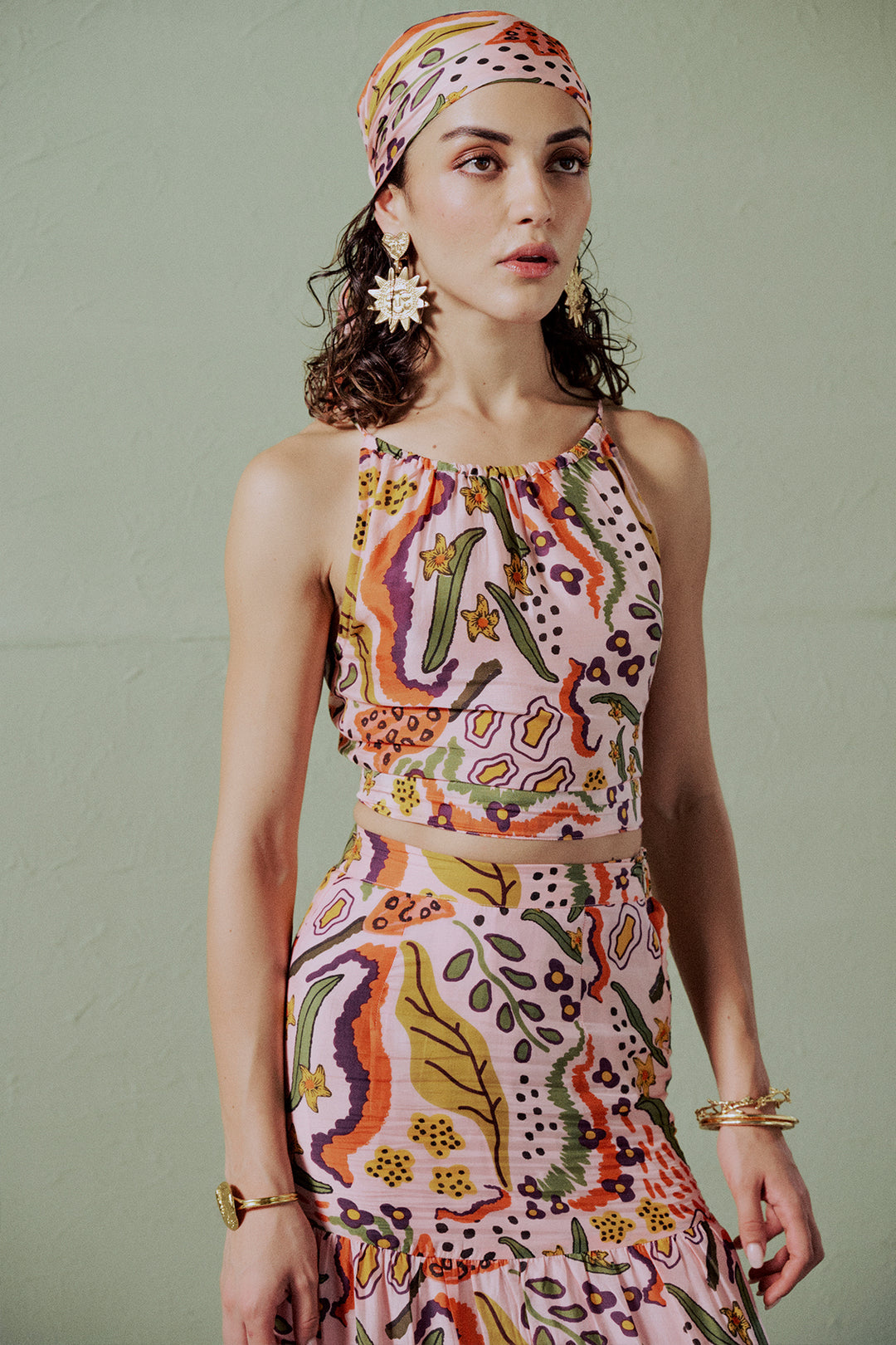 Occasion dressing gets a playful upgrade with the Tanzia Blouse,crafted in vibrant, mood-lifting hues for an effortlessly standout look. Its cute silhouette adds elegance with ease, making it perfect for any elevated setting. Pair it with the matching Tanzia Skirt and gold accessories for a chic, statement-making ensemble.